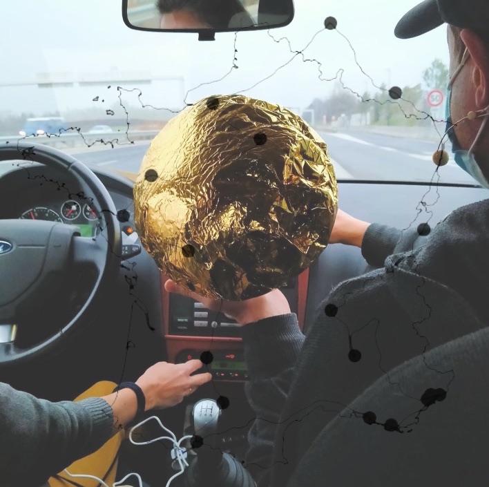 Charlotte Pringuey-Cessac invite 18 artistes à réaliser une pièce en lien avec le voyage, la rencontre, la transmission. De taille suffisamment petite pour intégrer l’espace de la boîte à gants, cette pièce doit être manipulable pour être « activée »  par des passagers que Charlotte rencontre sur sa route. Elle réalise un trajet, se rendant d’un atelier d’artiste à un autre, à bord de sa voiture et enregistre les réactions des passagers.